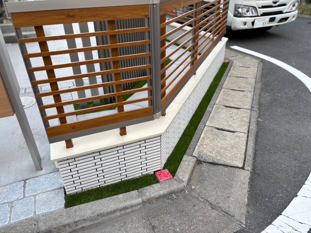 小さい範囲でも人工芝を施工する事で明るいイメージに仕上がりますね☆