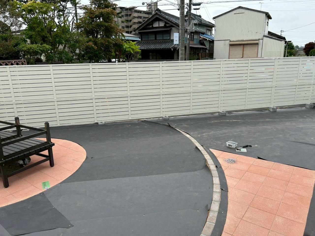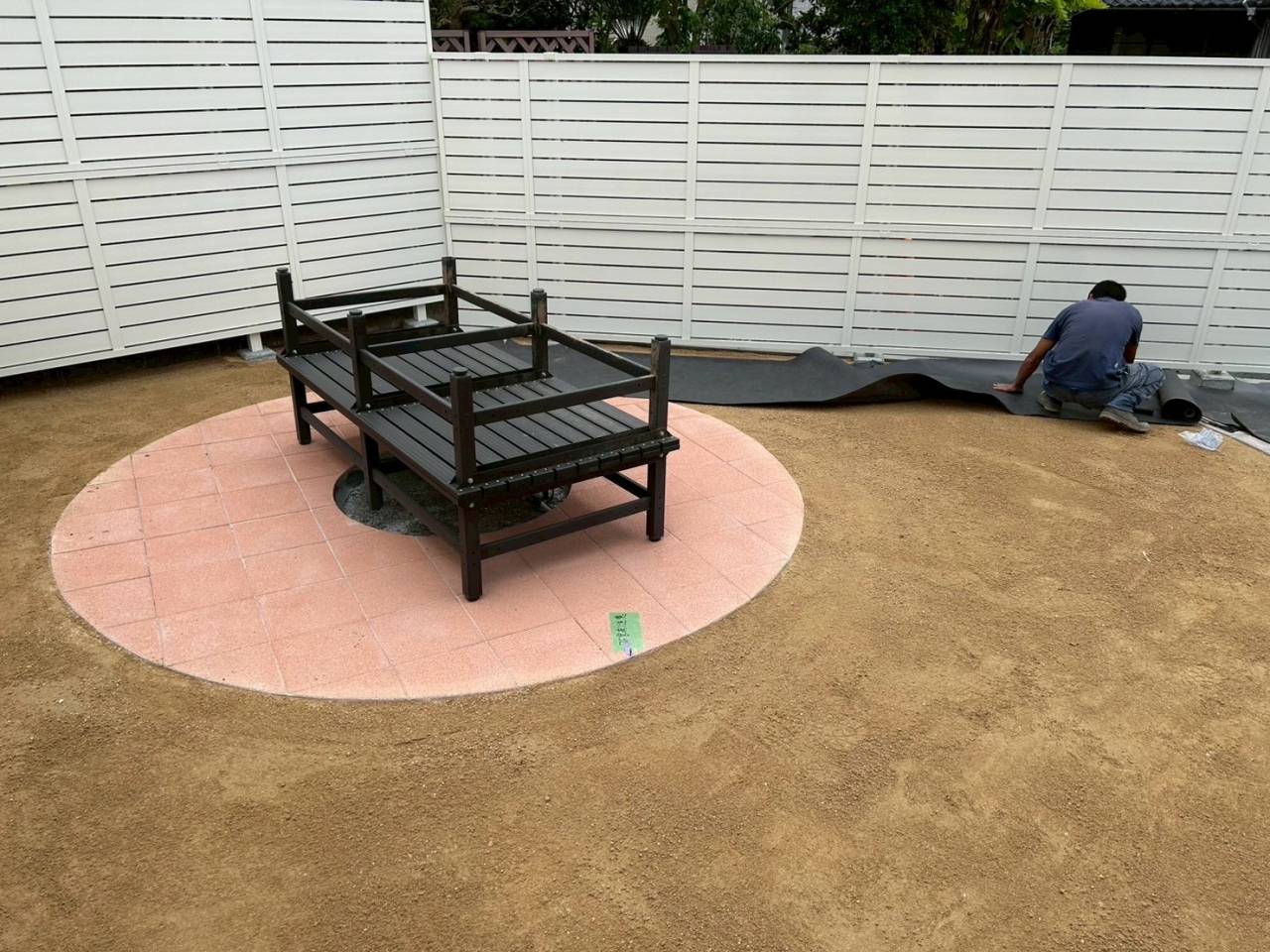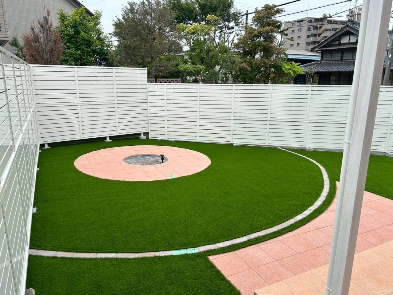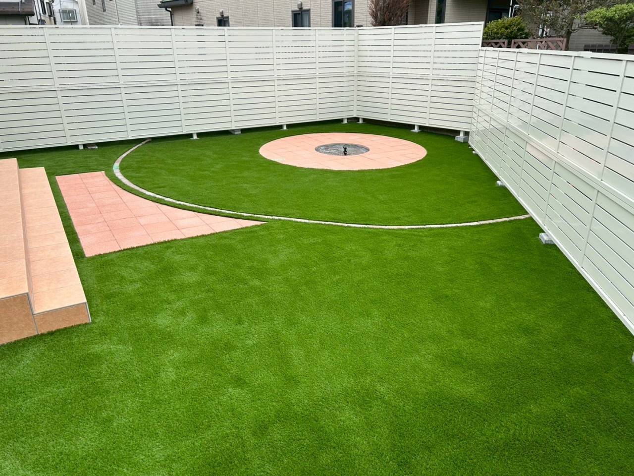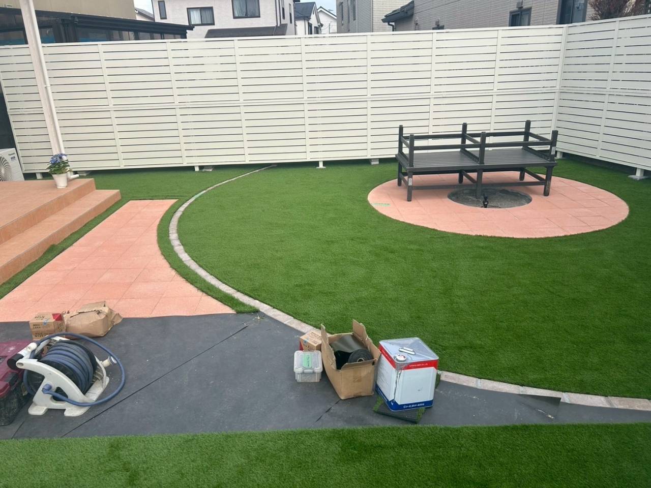 高さのある目隠しフェンスでプライベートな空間を作った後に人工芝施工で雑草対策の効いたお庭作り☆