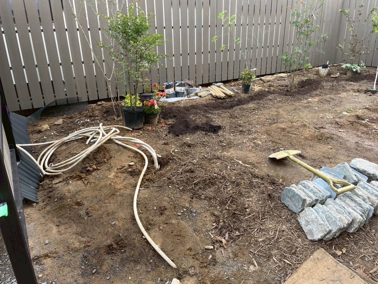 その他にも目隠しフェンスや植栽など様々なおしゃれが詰まったお庭の工事です☆