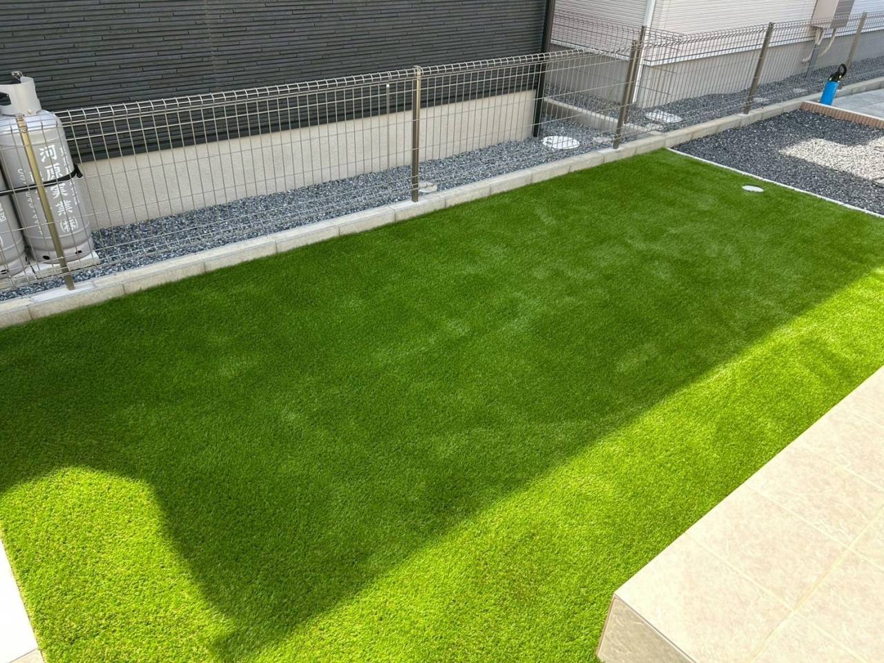人工芝施工をする事で暑いこの時期でもお庭の雑草に気を取られる事なく快適にお過ごし頂けます☆