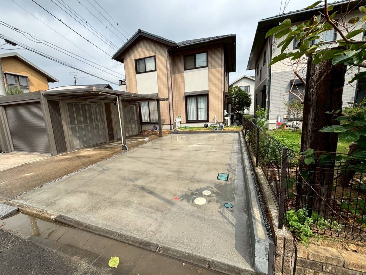 植栽や天然芝だとお手入れも必要なですが、土間コンクリートにする事により駐車場スペースの確保と雑草に悩まずお過ごし頂けますね☆
