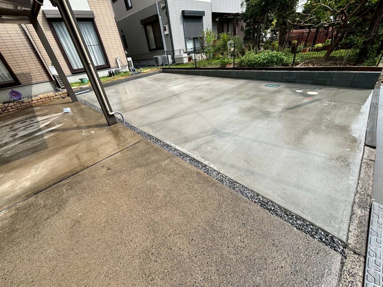 元々はお庭部分だった所を駐車場として活用したいとお問い合わせ頂き、土間コンクリートの施工をさせて頂きました☆