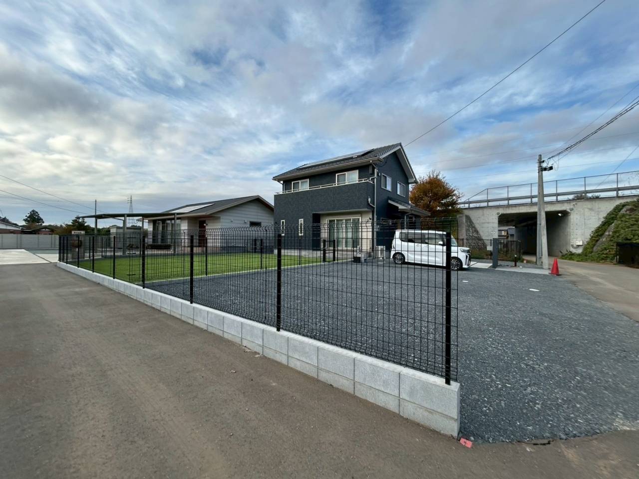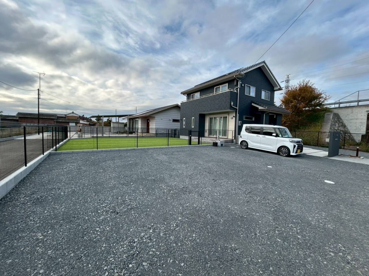 大きな敷地の為お庭部分は人工芝で車を停めるスペースには40.0砕石で仕上げました☆