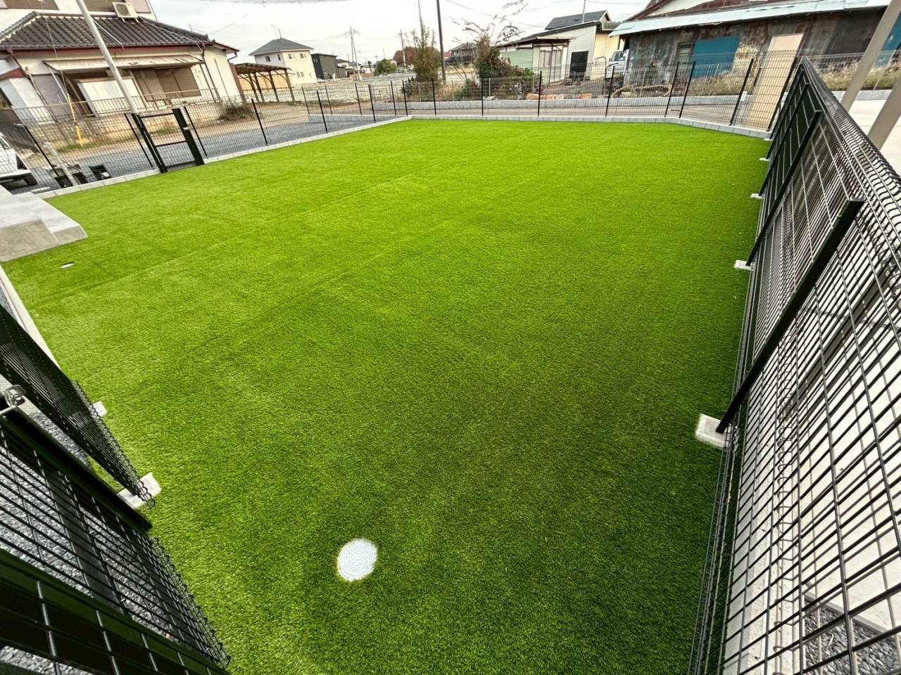 また、茨城県古河市の当社事務所に併設で体験出来る人工芝施工を施したドッグラン&外構の展示場もございます。