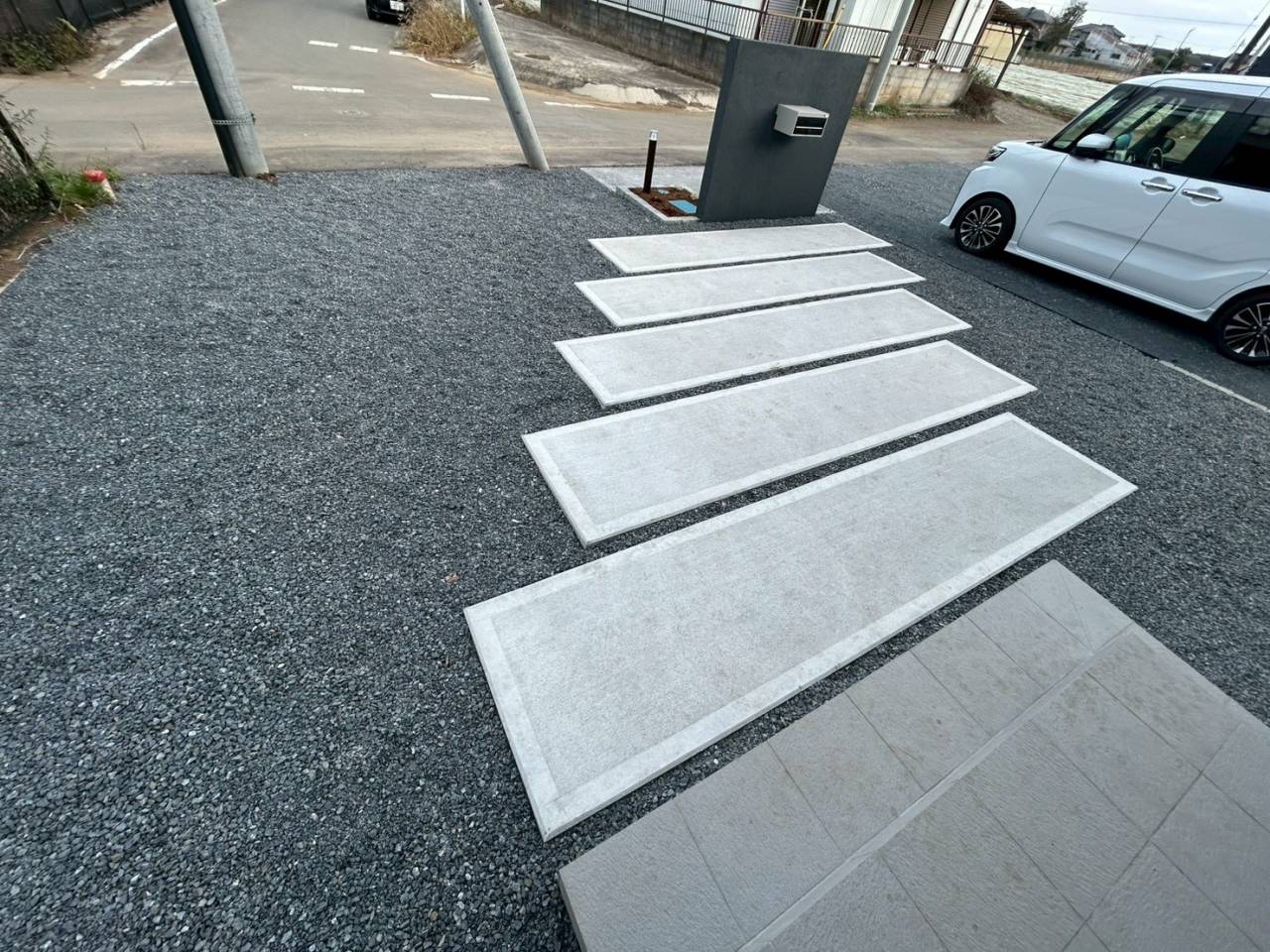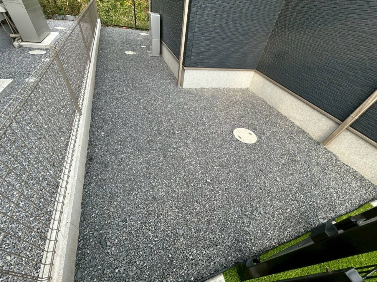 その他にはブラック積みや玄関アプローチ前の土間コンクリート、フェンス施工、雑草対策の6号砕石の施工でした☆