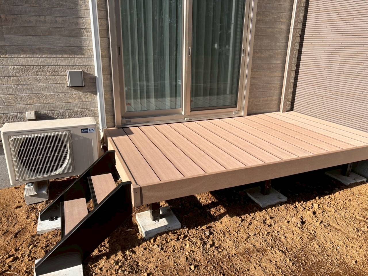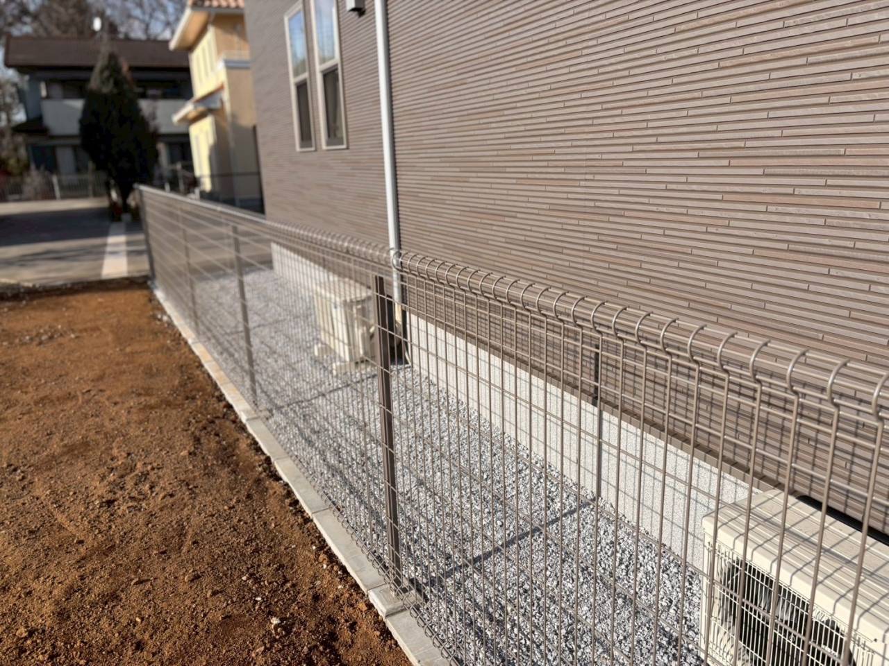 住宅周りにはメッシュフェンスやお庭側にはウッドデッキを施工させて頂きました☆